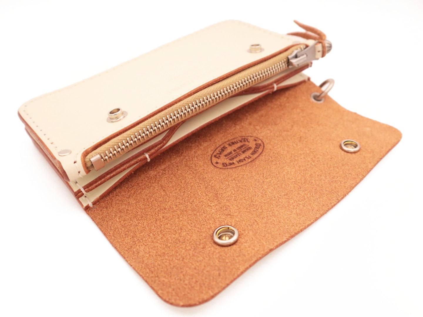 ファスナーには、1930年代頃まで製造されていた WALDES社 “Koh-i-noor” を忠実に再現した復刻モデルを使用。重厚な存在感を持つディテールです。
