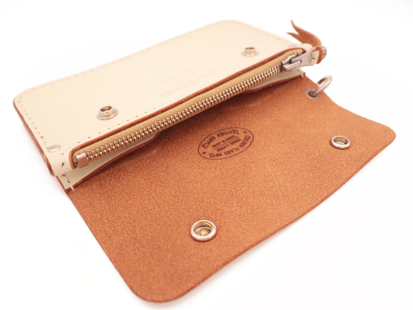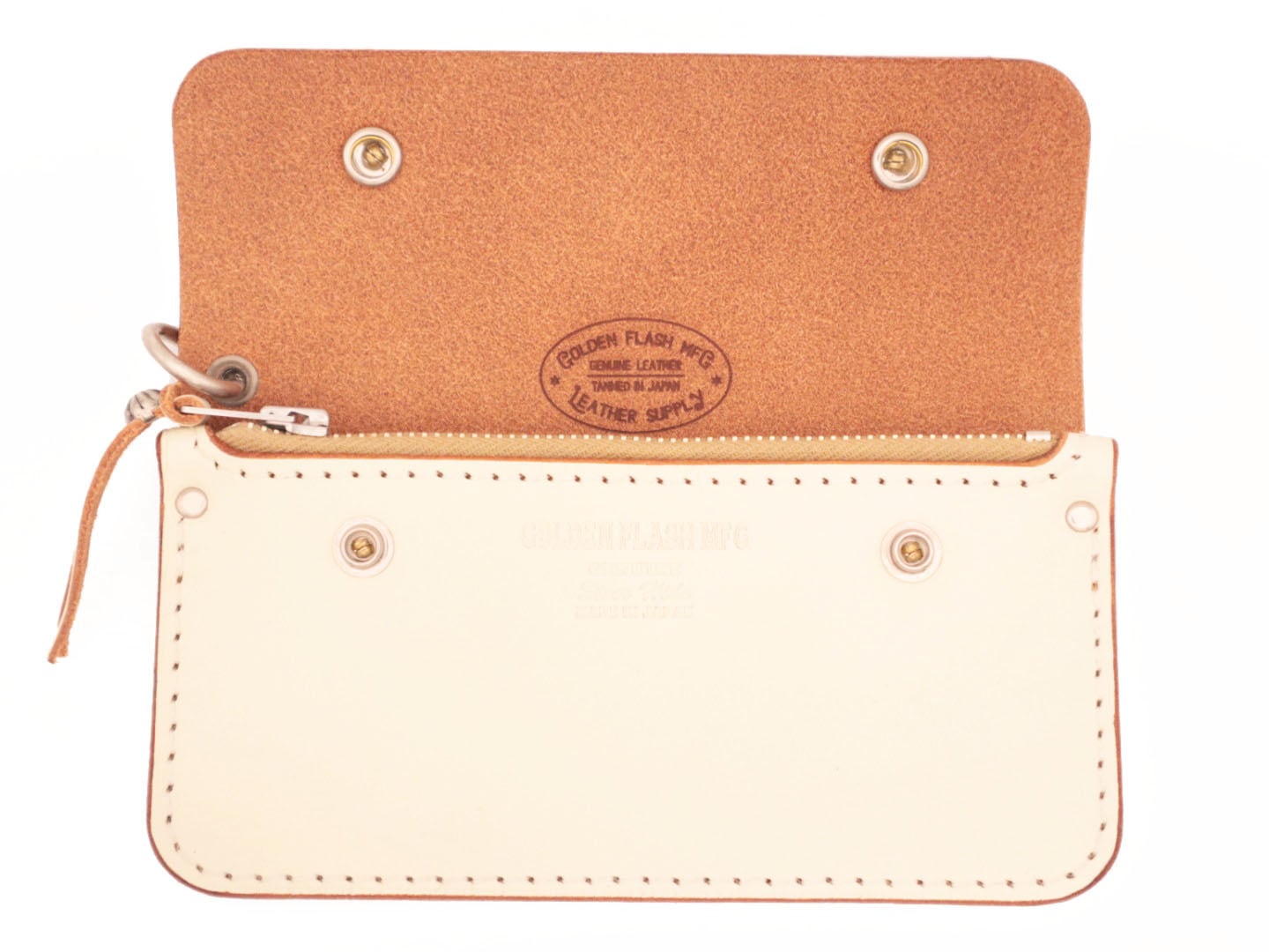 長く使い込み、時間とともに育てるために作られた、GOLDEN FLASH MFG定番のトラッカーズウォレット。